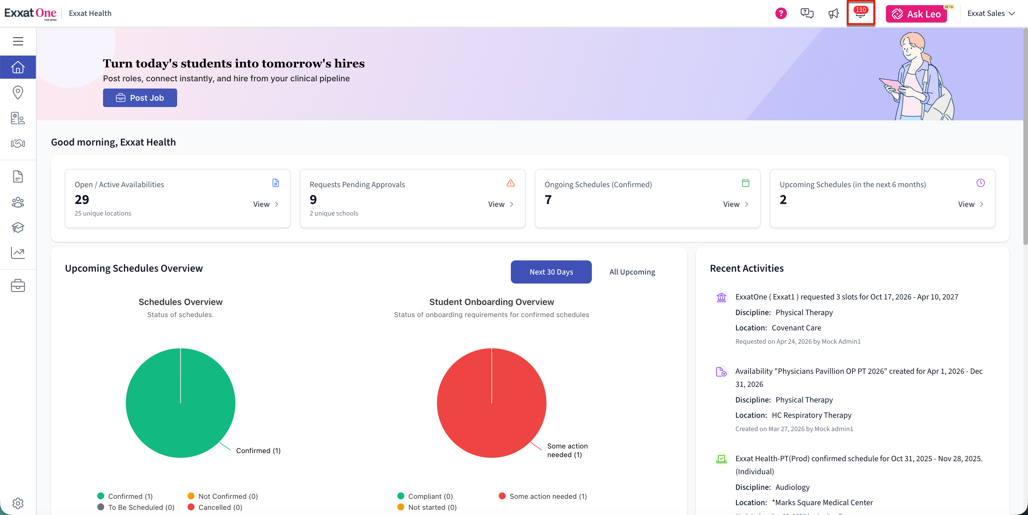 - Identify where notifications appear in Exxat One