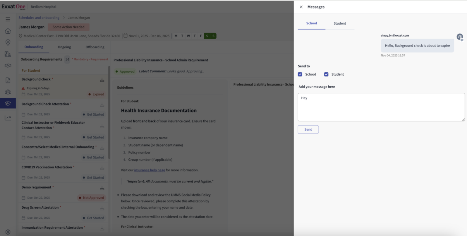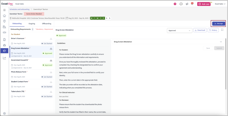 - Compliant — Schedules where students have completed onboarding and are compliant.