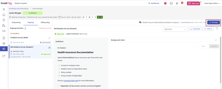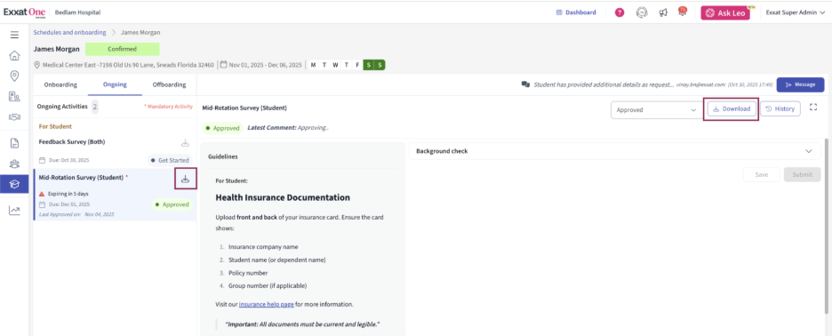 The same workflow is used to track and review the student ongoing and offboarding activities. Please see Reviewing Ongoing and Offboarding Activities