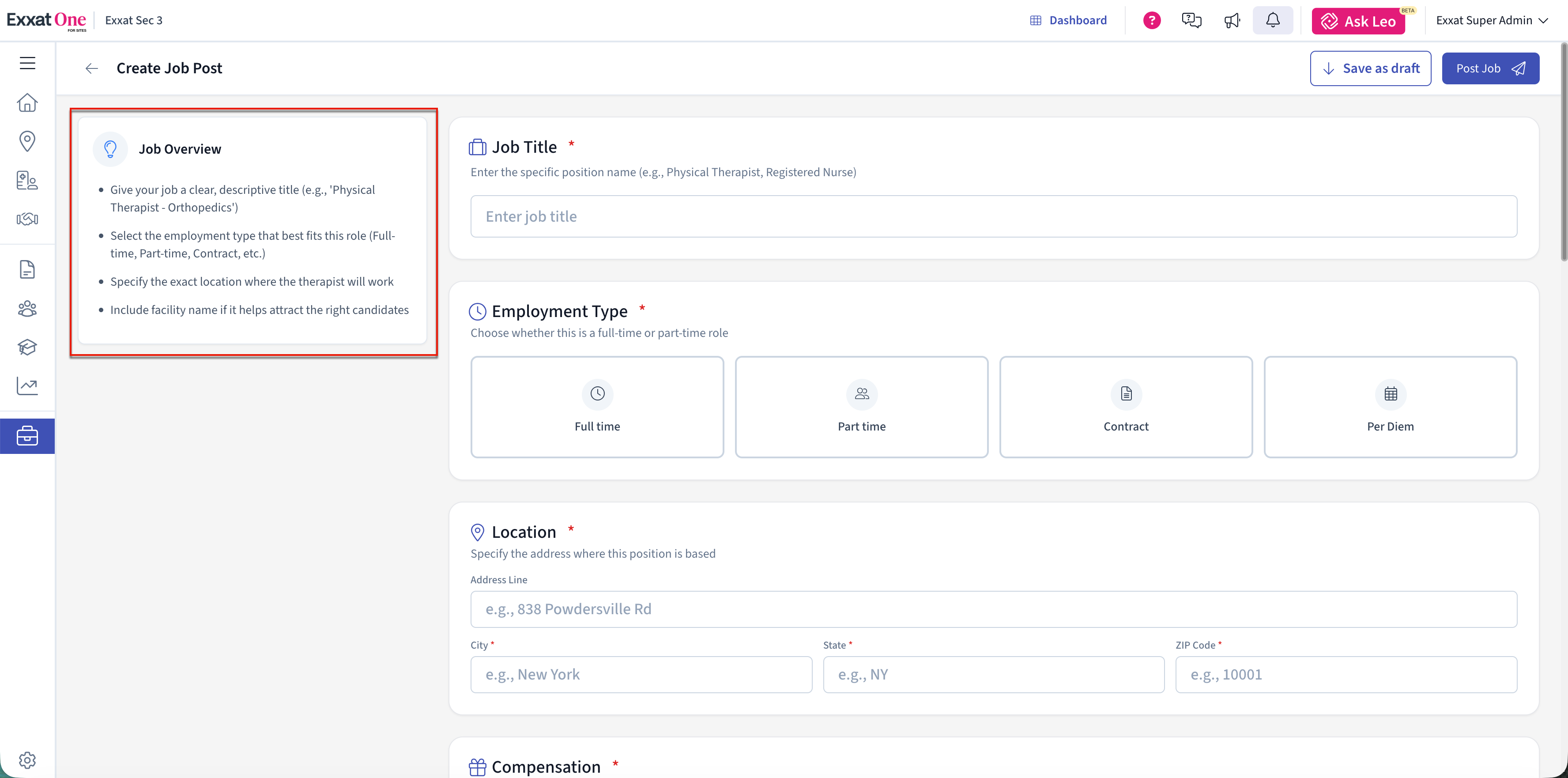 - Select the employment type that best fits this role (Full-time, Part-time, Contract, etc.)