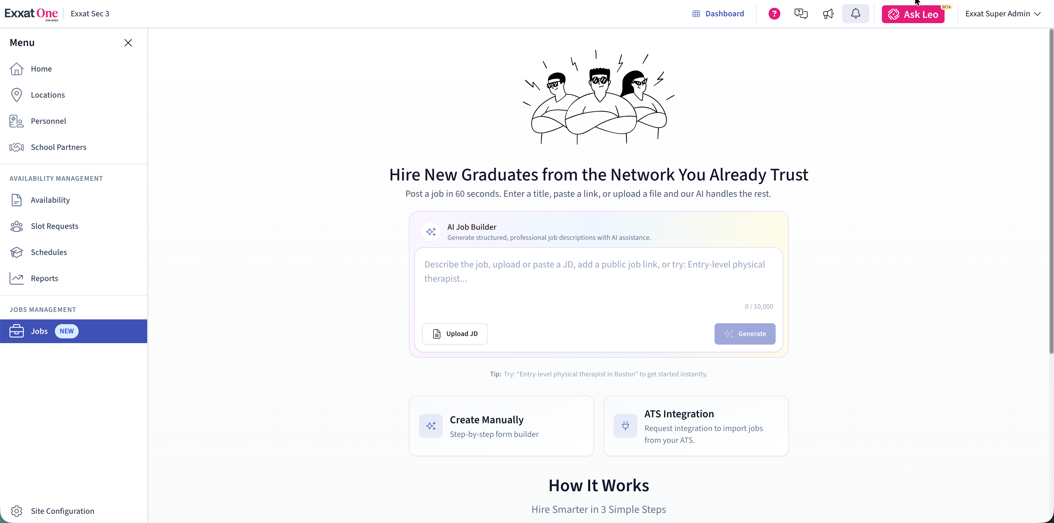 - Exxat-Managed Jobs, where sites create and manage jobs directly within Exxat