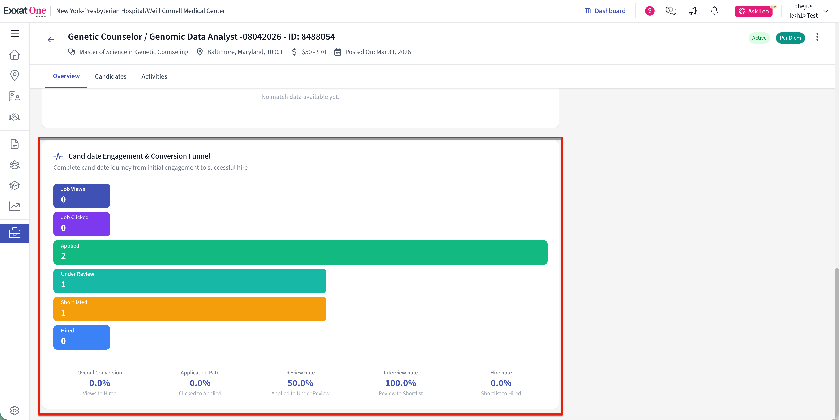 - Application submitted – Indicates when the candidate applied for the job