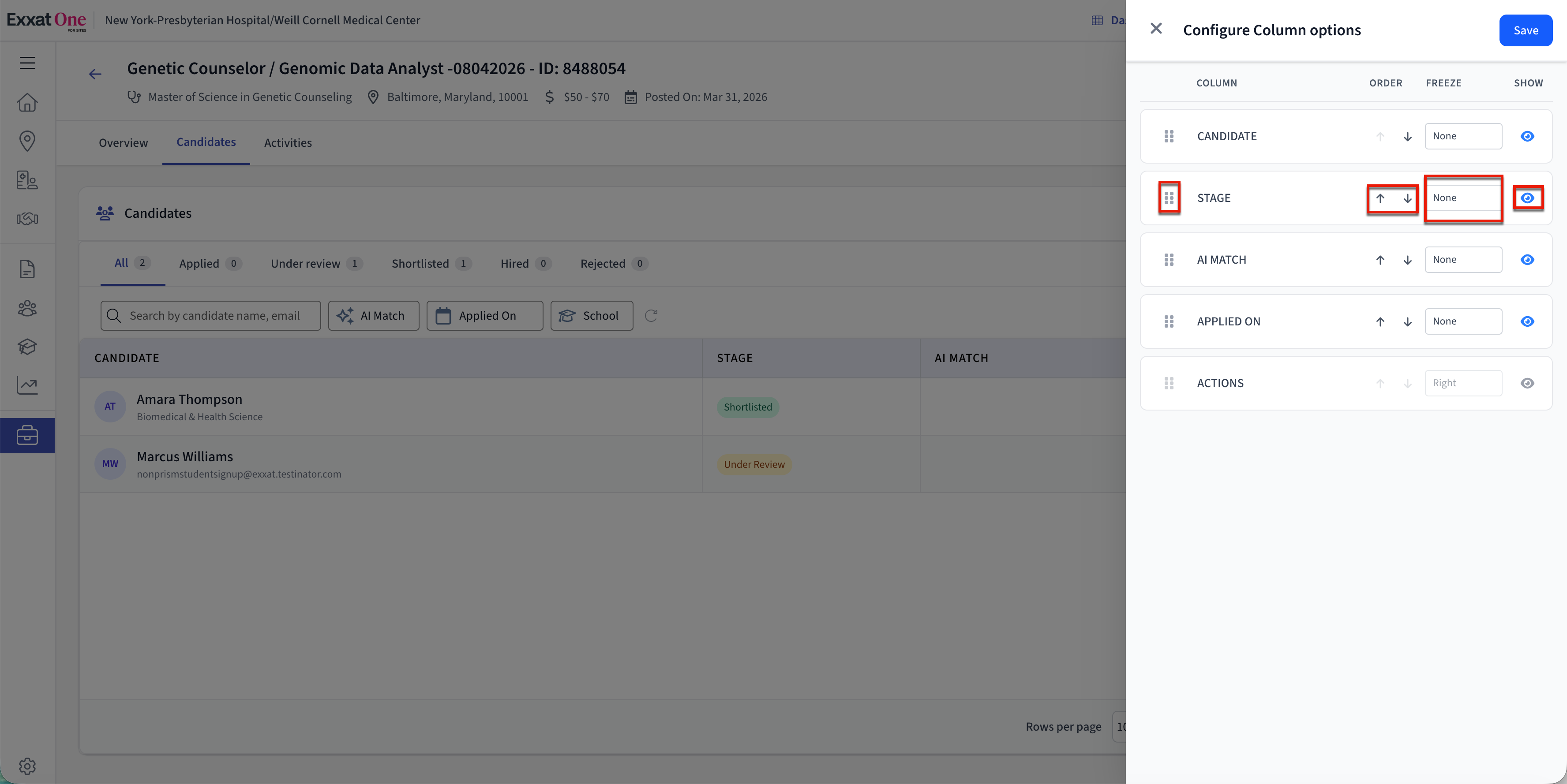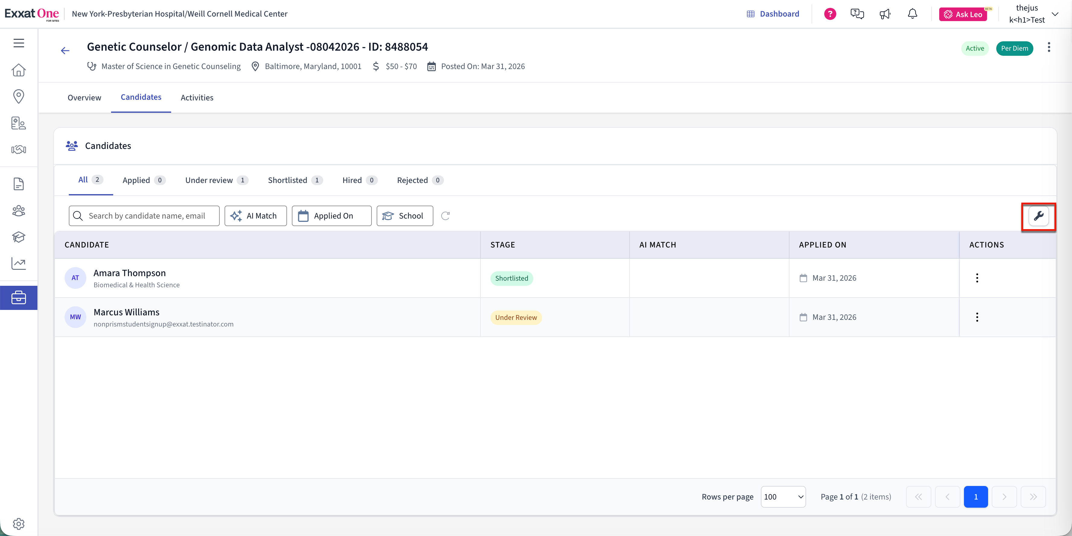 - Actions – Quick actions for managing candidates