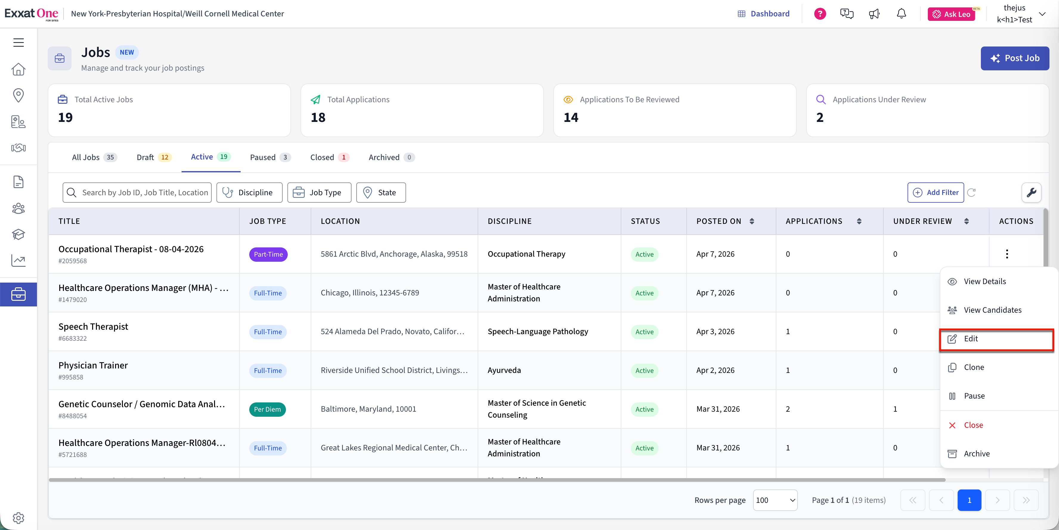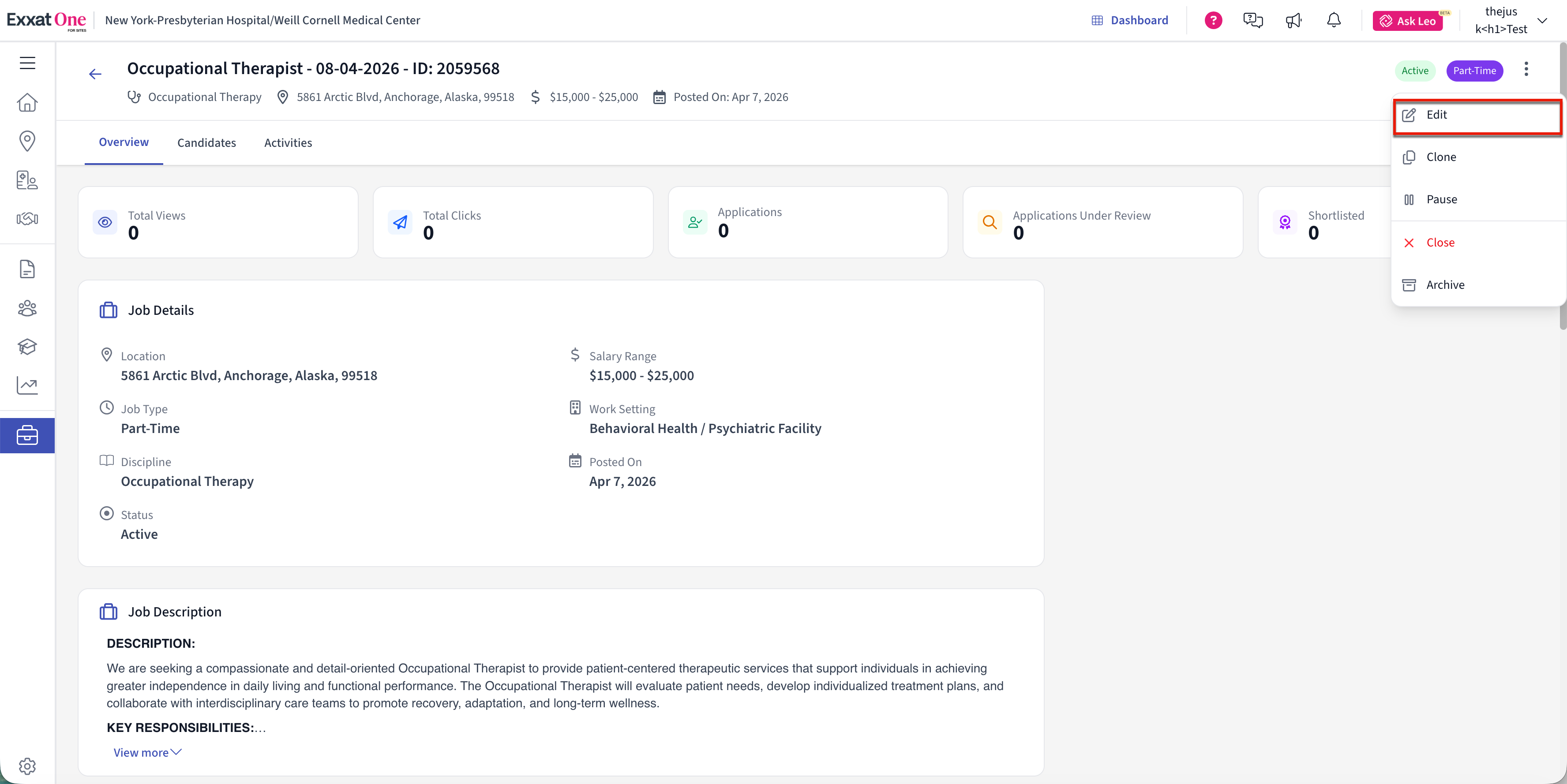 - Manage job lifecycle statuses (Draft, Active, Paused, Closed, Archived)